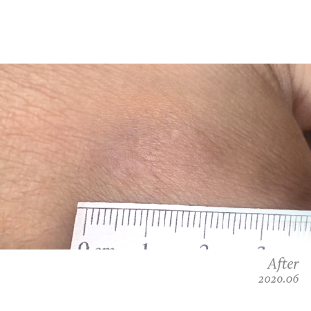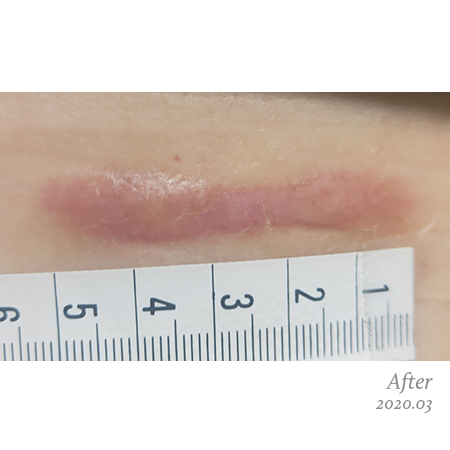 This patient had suffered from a keloid scar for nearly 10 years, along with severe itching and pain. After consistent use of Rystora® Silicone Tape, the scar showed dramatic improvement in texture, while discomfort, itching, and pain were also reduced.