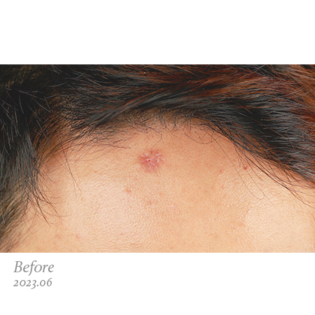 30 year old patient underwent a cyst removal procedure at an aesthetic clinic. After using Rystora® Silicone Scar Gel, He noticed that the scar gradually faded from a visible red color to a lighter appearance. The raised texture also became less noticeable over time, making the scar look smoother and less obvious.
