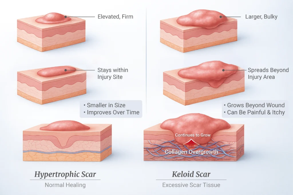 Knowing whether a scar is a hypertrophic scar or a keloid is important because the healing pattern is not the same. While both are raised scars, keloids tend to grow beyond the wound and may require closer attention. With the right care and timely support, scar appearance and comfort may be better managed over time.