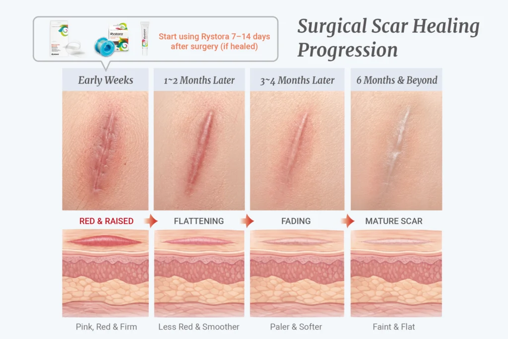 Explore Rystora scar care solutions designed to support skin recovery after wound closure.
